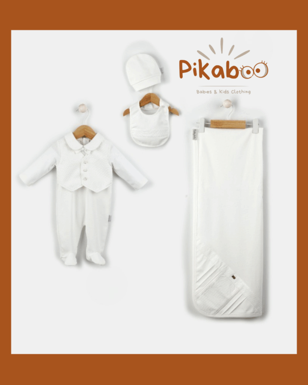 Magnifique ensemble estival pour bébé garçon : un short blanc lumineux associé à une chemise à motifs palmiers dans des tons bleus apaisants. Une tenue fraîche et stylée, idéale pour les journées ensoleillées ou les petites escapades.