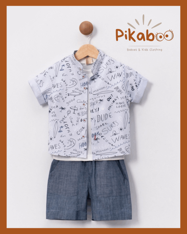 Magnifique ensemble estival pour bébé garçon : un short blanc lumineux associé à une chemise à motifs palmiers dans des tons bleus apaisants. Une tenue fraiche et stylée, idéale pour les journées ensoleillées ou les petites escapades.