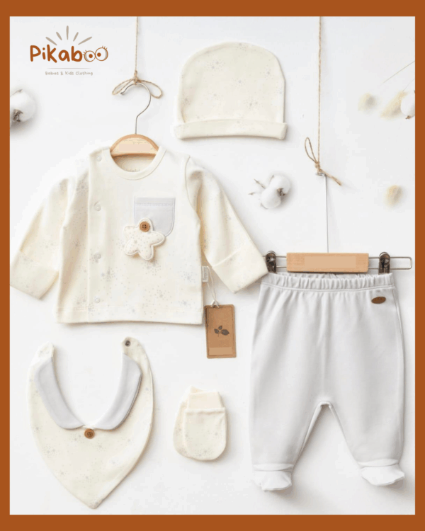 Coffret Bébé 5 Pièces Doux en Coton avec bavoir à col et petite étoile